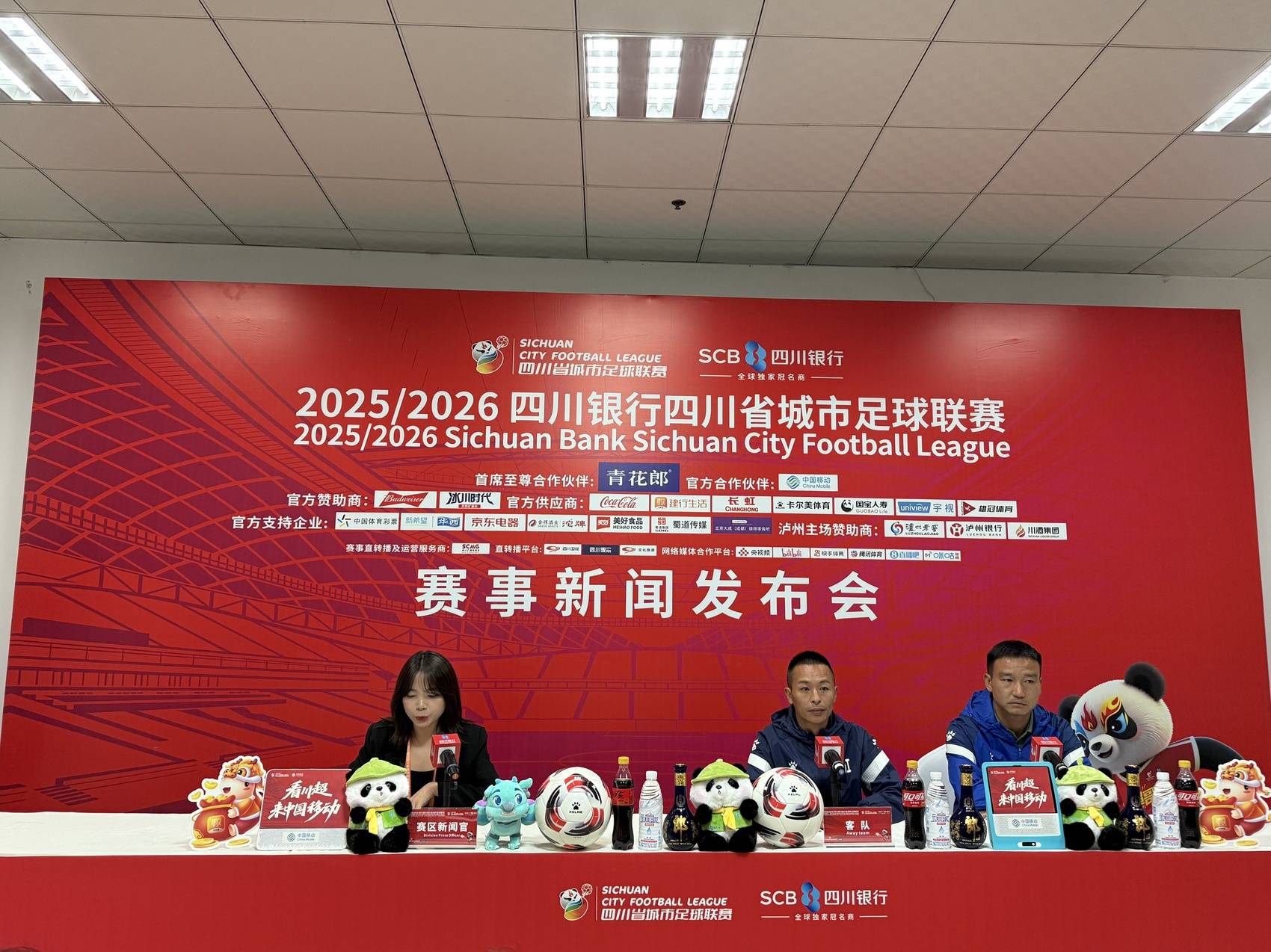 10月17日晚上,2025/2026“川超”联赛泸州赛区主场赛事赛前新闻发布会在泸州市奥林匹克体育公园一楼体育学院会议室召开。根据赛事安排,10月18日晚上7点35分,泸州窖香队将坐镇主场,迎战内江重龍酒队。