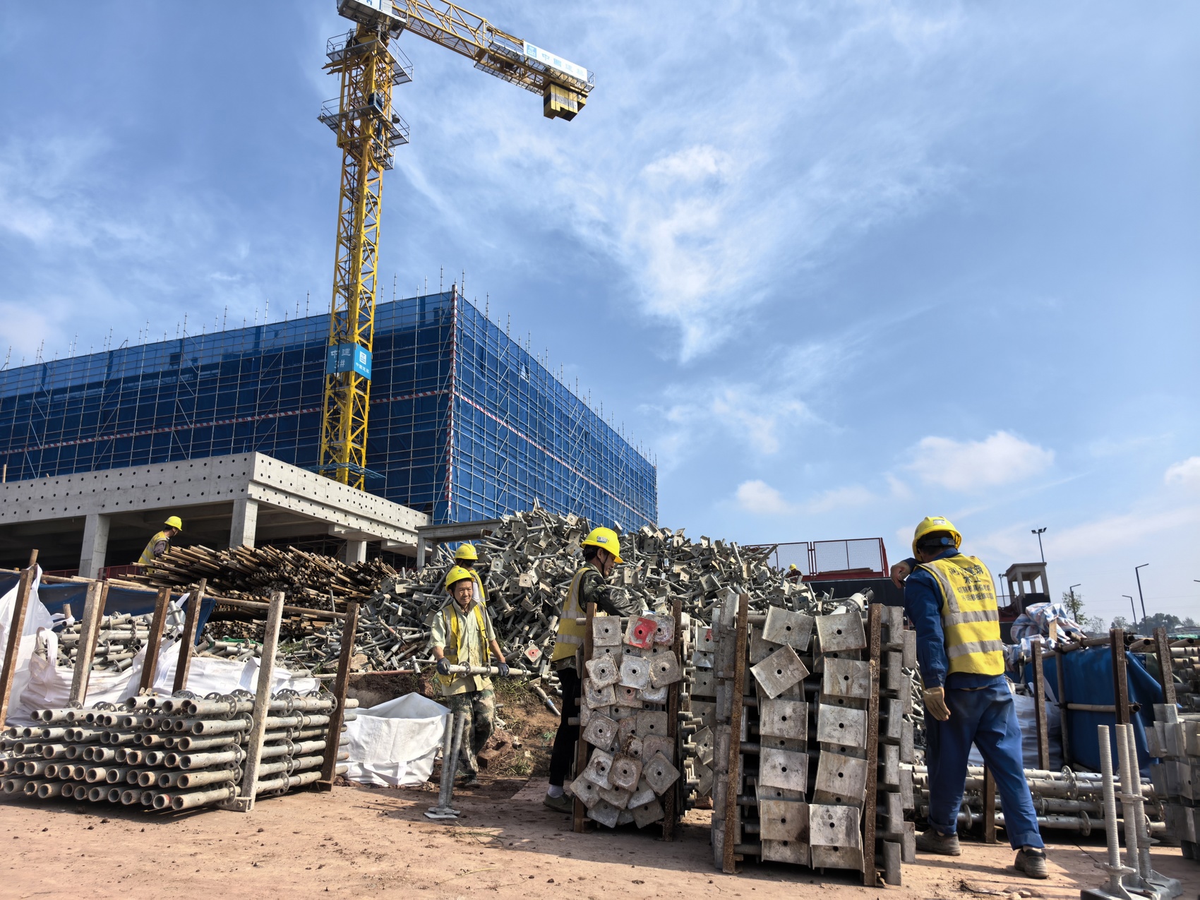 医技楼前的工人。