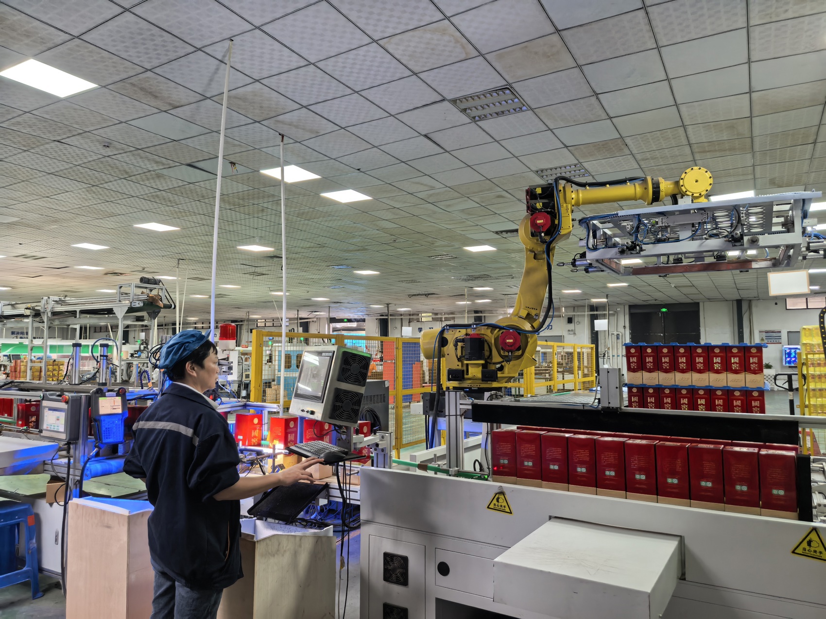 奖补政策的导向作用,正推动产业链发生“链式”反应。作为泸州老窖的产业链企业,泸州裕同包装科技有限公司感受到了来自客户端的“倒逼”力量,也尝到了转型后的甜头。在国窖1573产品智能装配车间,今年9月刚完成智能化升级后的自动生产线以每小时3000个的速度生产成品酒盒。“效率提升133%,人力成本下降60%,良品率提升至99.95%。”该公司总经理王发陆表示,全面导入智能系统后,企业实现了从订单排产到人员操作的实时透明化管理。