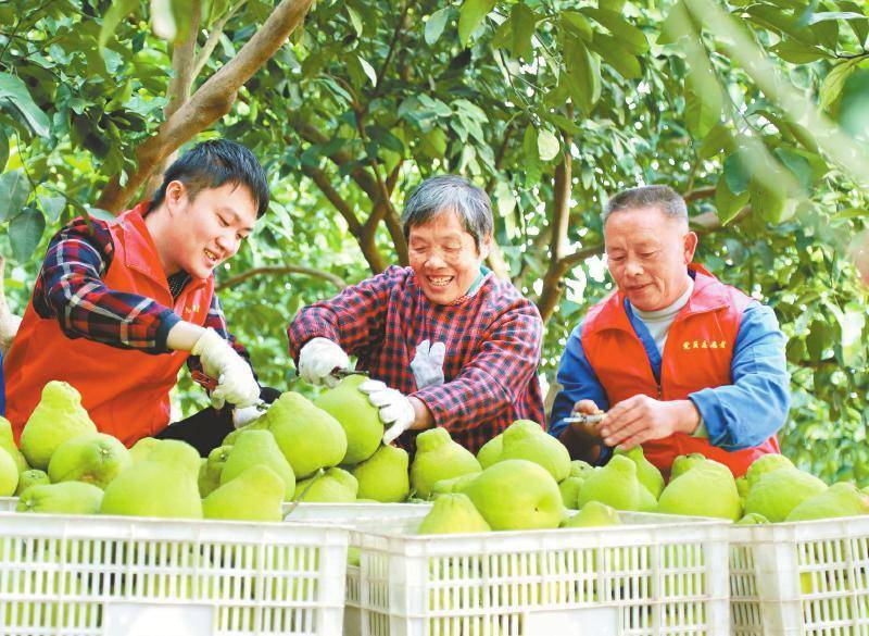 村民们采摘合江真龙柚。 卢海军 摄