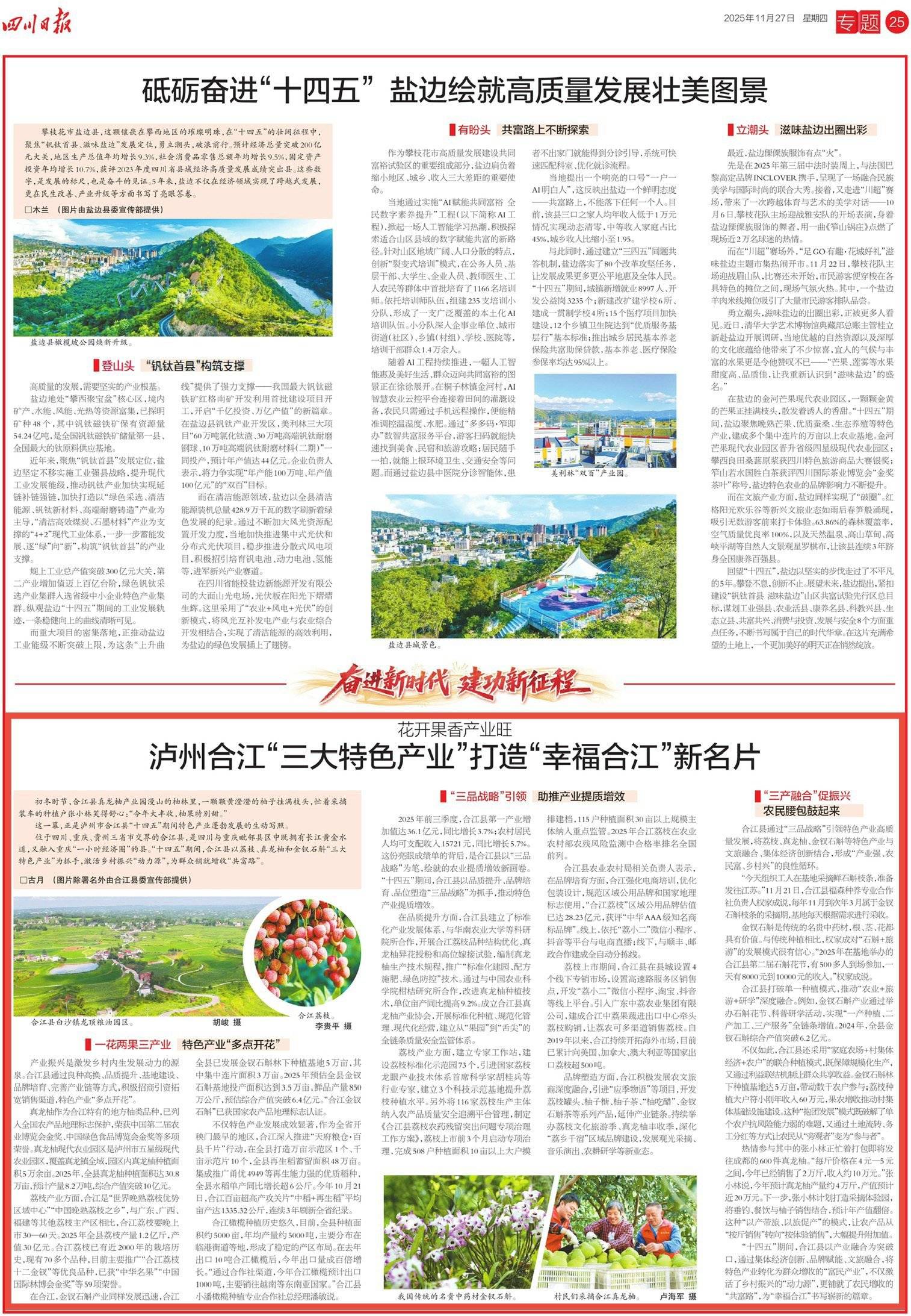 “十四五”期间,合江县以产业融合为突破口,通过集体经济创新、品牌赋能、文旅融合,将特色产业转化为群众增收的“富民产业”,不仅激活了乡村振兴的“动力源”,更铺就了农民增收的“共富路”,为“幸福合江”书写崭新的篇章。(图片除署名外由合江县委宣传部提供)
