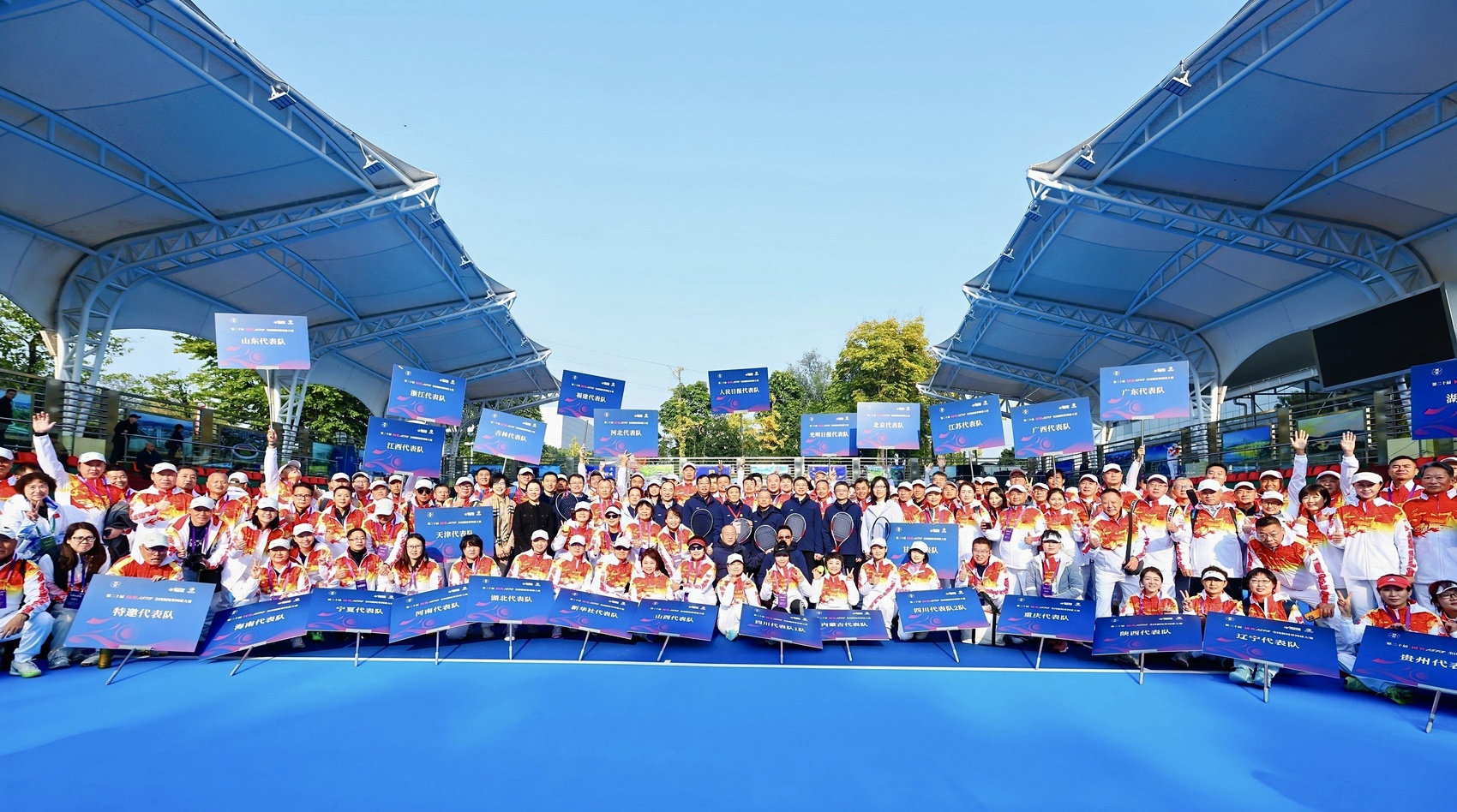 11月27日,第20届国窖1573全国新闻界网球大赛27日在四川泸州市拉开帷幕。来自全国94家媒体的两百多名参赛选手将在为期三天比赛中争夺五个项目的冠军。