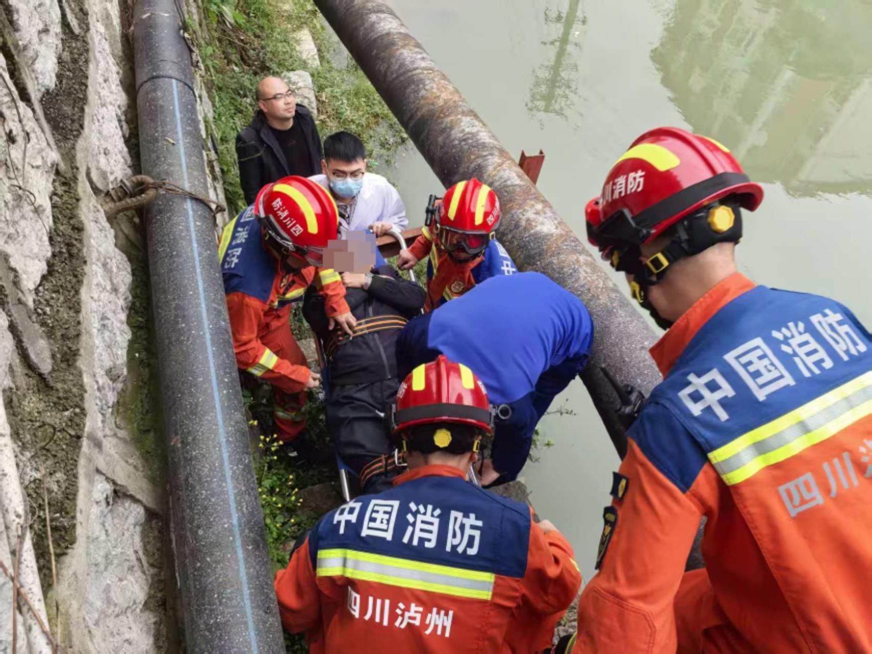 这场暖心救援发生在11月17日13时许。当日,古蔺县消防救援大队白沙场镇消防救援站接到报警称,一名老人在白沙河旁不慎跌落河坎,腿部骨折且无法自行脱困。接警后,该站迅速派出2车8人赶赴现场展开救援。