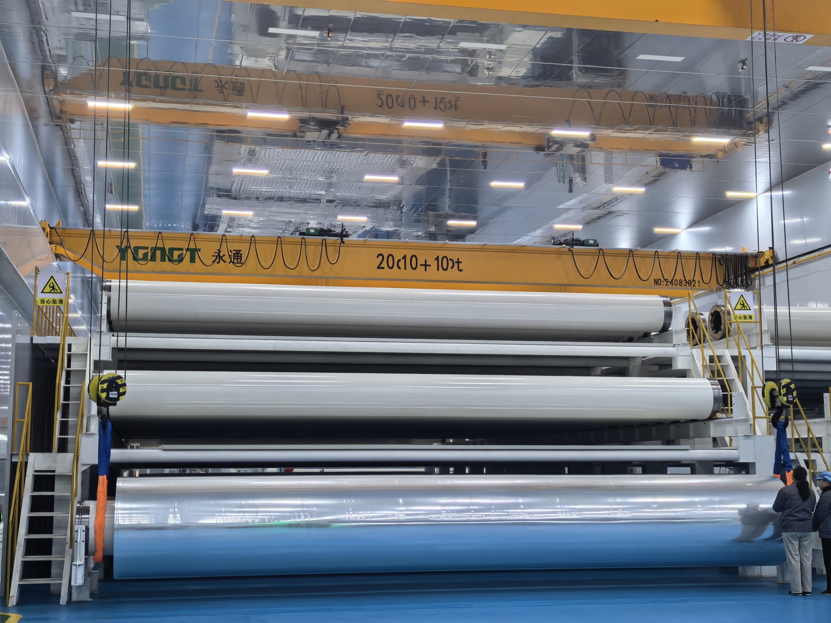 月初刚投产的首条进口组装高速宽幅双向拉伸聚丙烯薄膜生产线。(郭荞璐 摄)