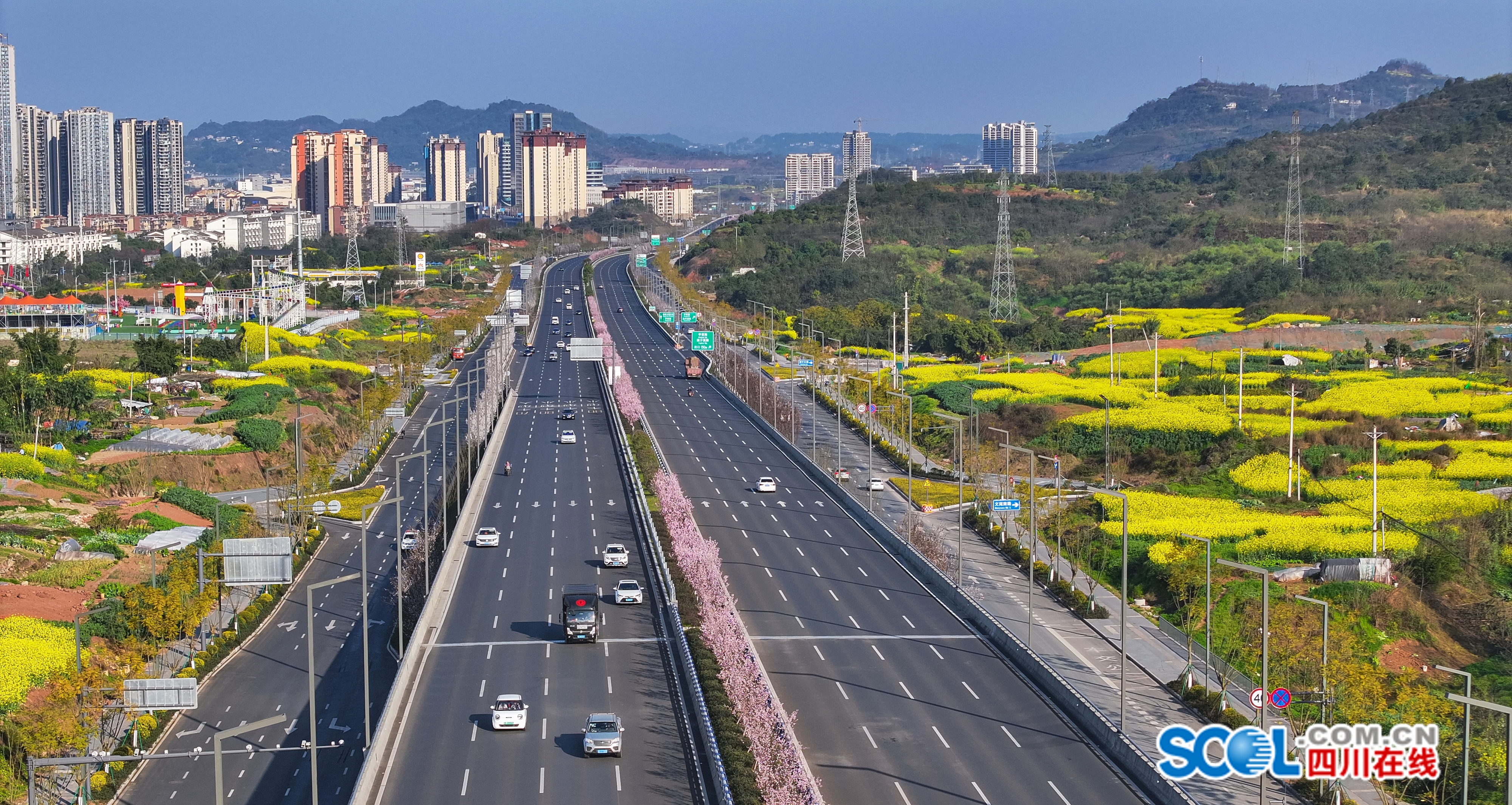 作为泸州“十四五”期间完成的一项重要民生工程,全长52.5公里的泸州二环路,贯穿泸州市江阳区、龙马潭区、纳溪区,包含蜀泸立交、七一互通立交、城南互通立交等23座互通立交,平均间距约2.3公里。从地图上看,二环路宛如一条珠链,串联起城北、城西、城南、纳溪、长江湿地新城、泰安-黄舣、高坝-安宁-石洞等片区。不仅市民出行更方便,二环路更是紧密衔接了四川自贸试验区川南临港片区、长江经济开发区等重点发展平台,有力支撑了城西新城、高铁新城等新兴区域发展,高效连接了泸州港、云龙机场、泸州高铁站以及多条高速公路出入口,对泸州城市空间重塑、各城市组团联动发展起到了巨大的支撑作用。