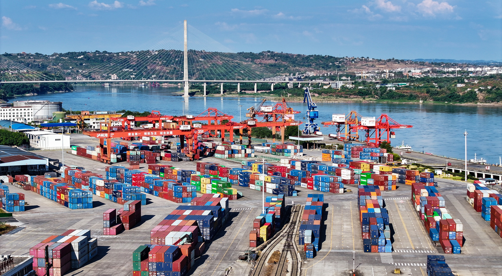 近年来,随着向东江海联运班轮鸣笛启航,南向铁海联运班列疾驰而去,西向中欧中亚班列奔赴远方——三向联动的国际物流大通道,让泸州港从“内河港”变身“开放港”,成为了连接国内国际双循环的重要节点。
