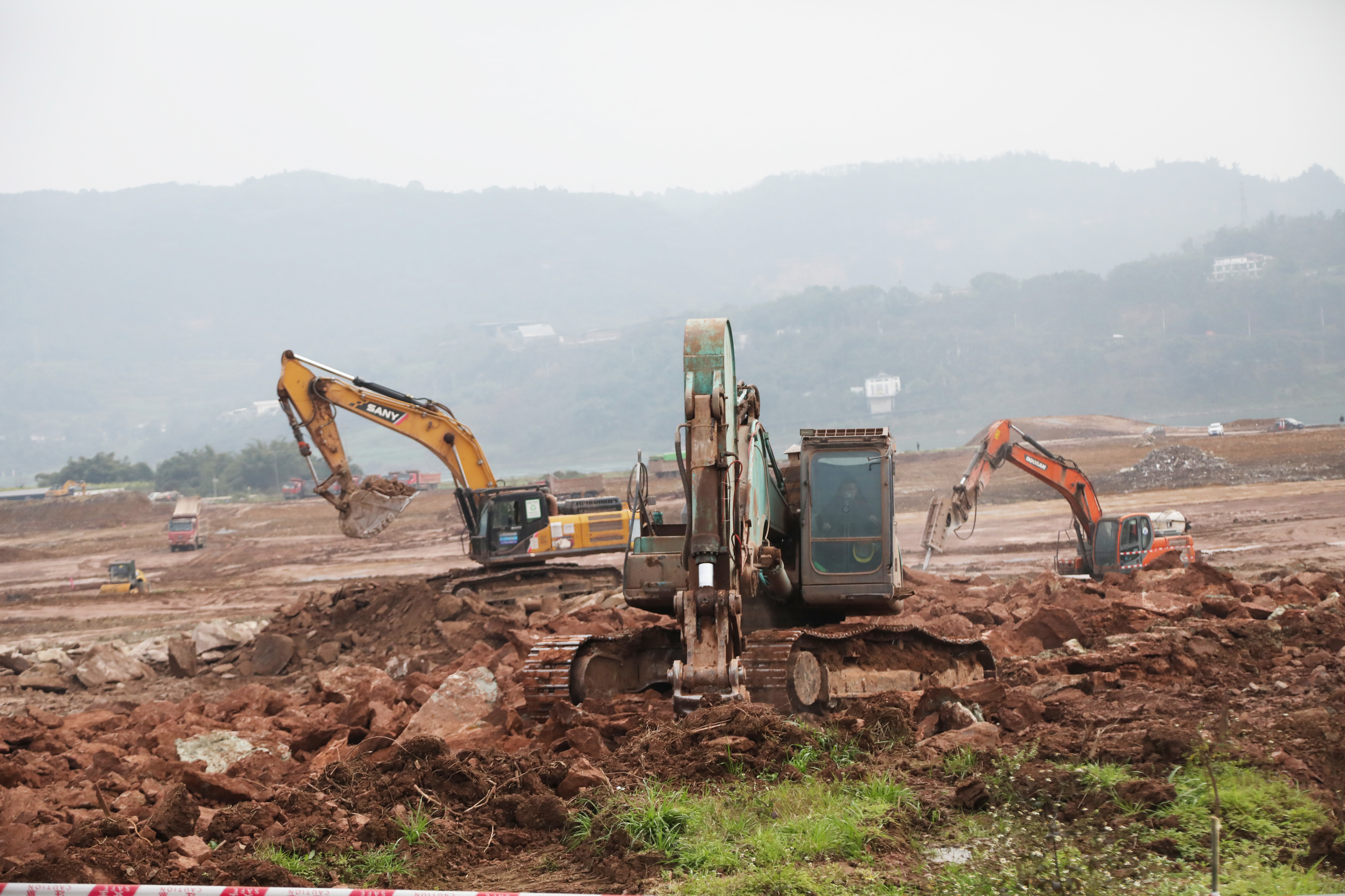 四川在线泸州消息(张红 文/图)2月10日,江阳区江北镇龙江港区的大脚石作业区一期工程现场,60多名工人正在进行场平土石方施工,十多台机械设备同时作业,协同进行土石方开挖。据悉,作为泸州江北港暨重装产业园的重要组成部分,大脚石作业区一期工程将新建4个1000吨级泊位,计划在三年内投用,助力川南临港产业“通江达海”。