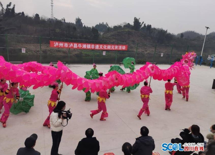 四川在线泸州消息(莫萨莎 张艳萍 曾佐然) 2月14日,泸县牛滩镇非遗文化闹元宵活动走进新嘉村。在新嘉村新建的文化广场上,伴随着欢快的配乐,色彩艳丽、气势磅礴的荷花龙在女子舞龙队员们的舞动下时而翔跃飞腾,时而盘旋游走,栩栩如生。