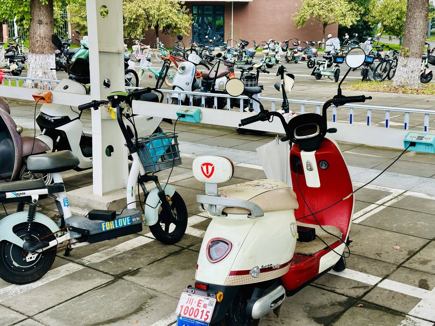 然而,这样的“有序”并非一直存在。据统计,截至2023年初,该校两个校区电动两轮车保有量已达约4900辆。随之而来的,是车辆随意穿行、违规载人、飞线充电、乱停乱放等问题,部分车辆甚至阻塞消防通道,校内曾多次发生电动两轮车交通事故,不仅影响校园交通秩序,更直接威胁师生生命安全,成为校园治理的“老大难”。