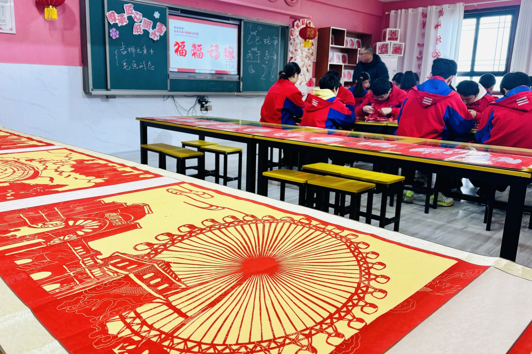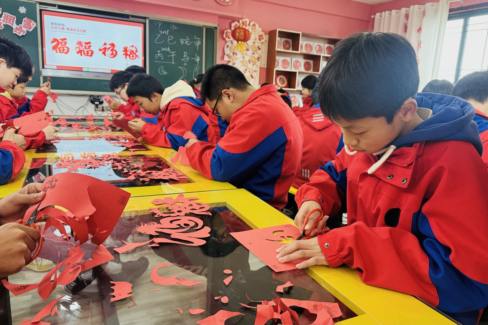 泸县海潮镇学校的剪纸工作坊。