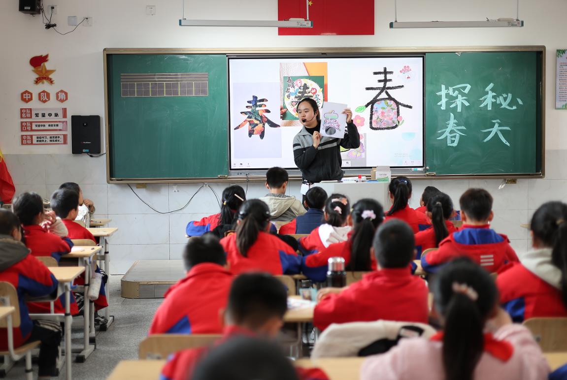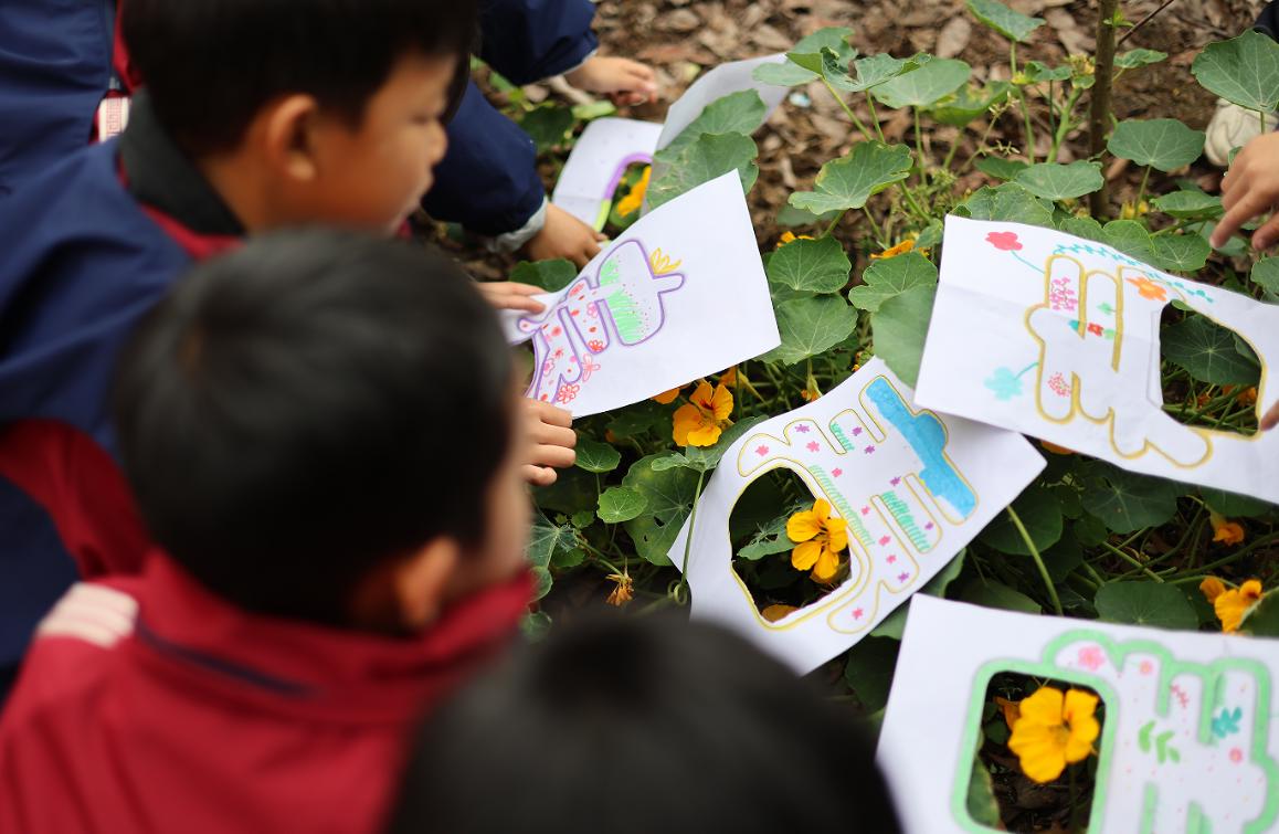 “没有围墙的教室,才是最好的美育课堂。”老师祝宋梅笑着说,“当孩子们亲手让画作与植物融为一体时,他们不仅学会了发现美,更学会了创造美。那些与自然同框的“春”字、那双亮晶晶发现美的眼睛,已经在这个春天,种下了关于热爱与感知的种子。”
