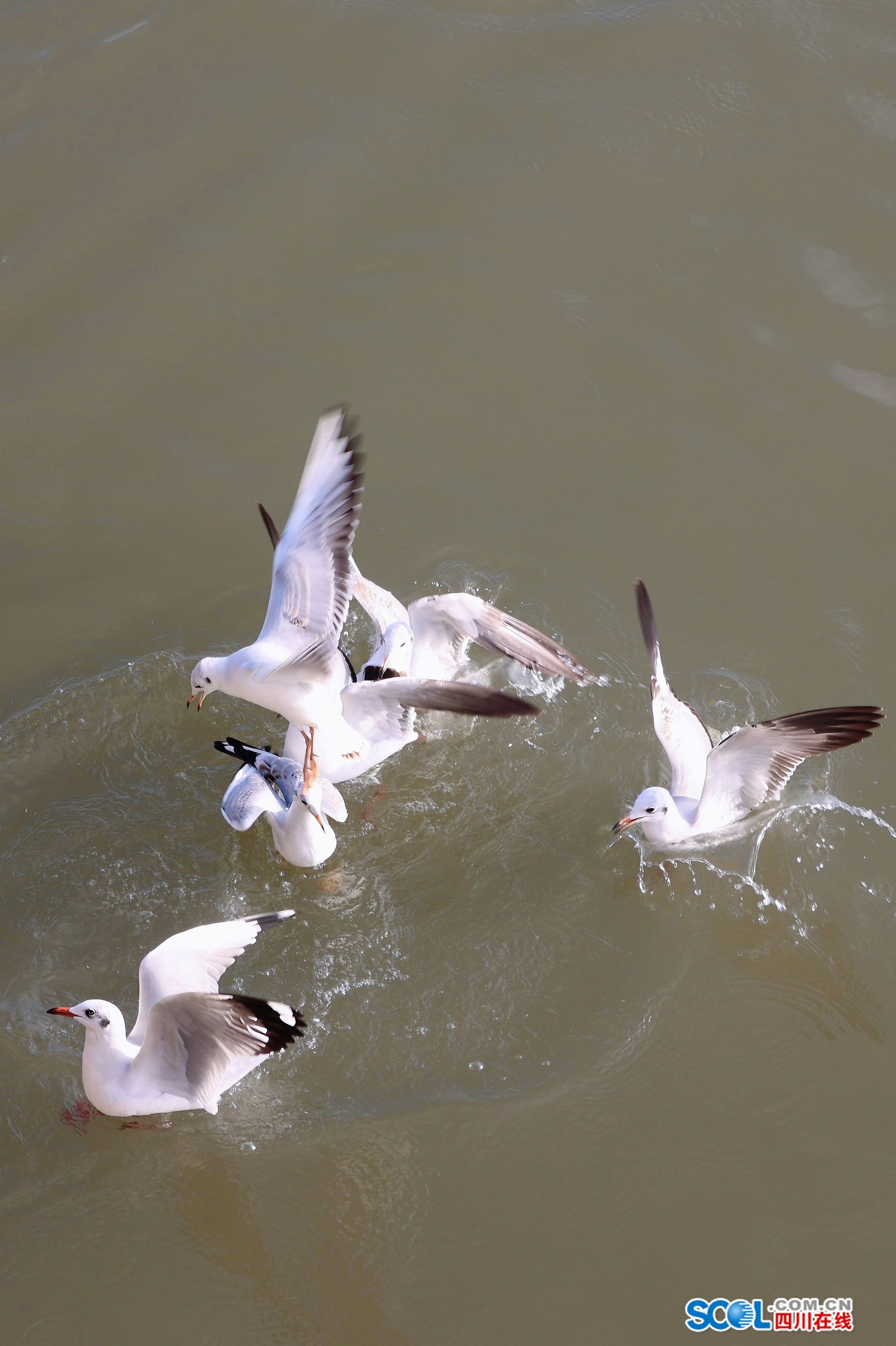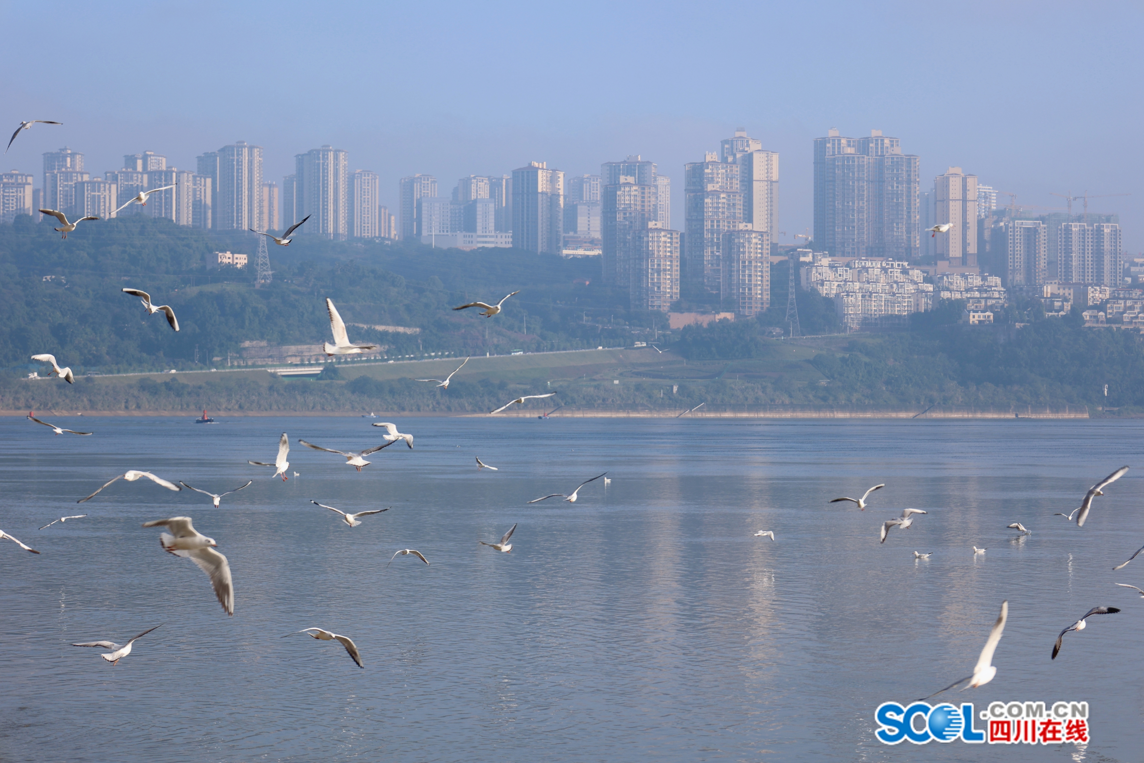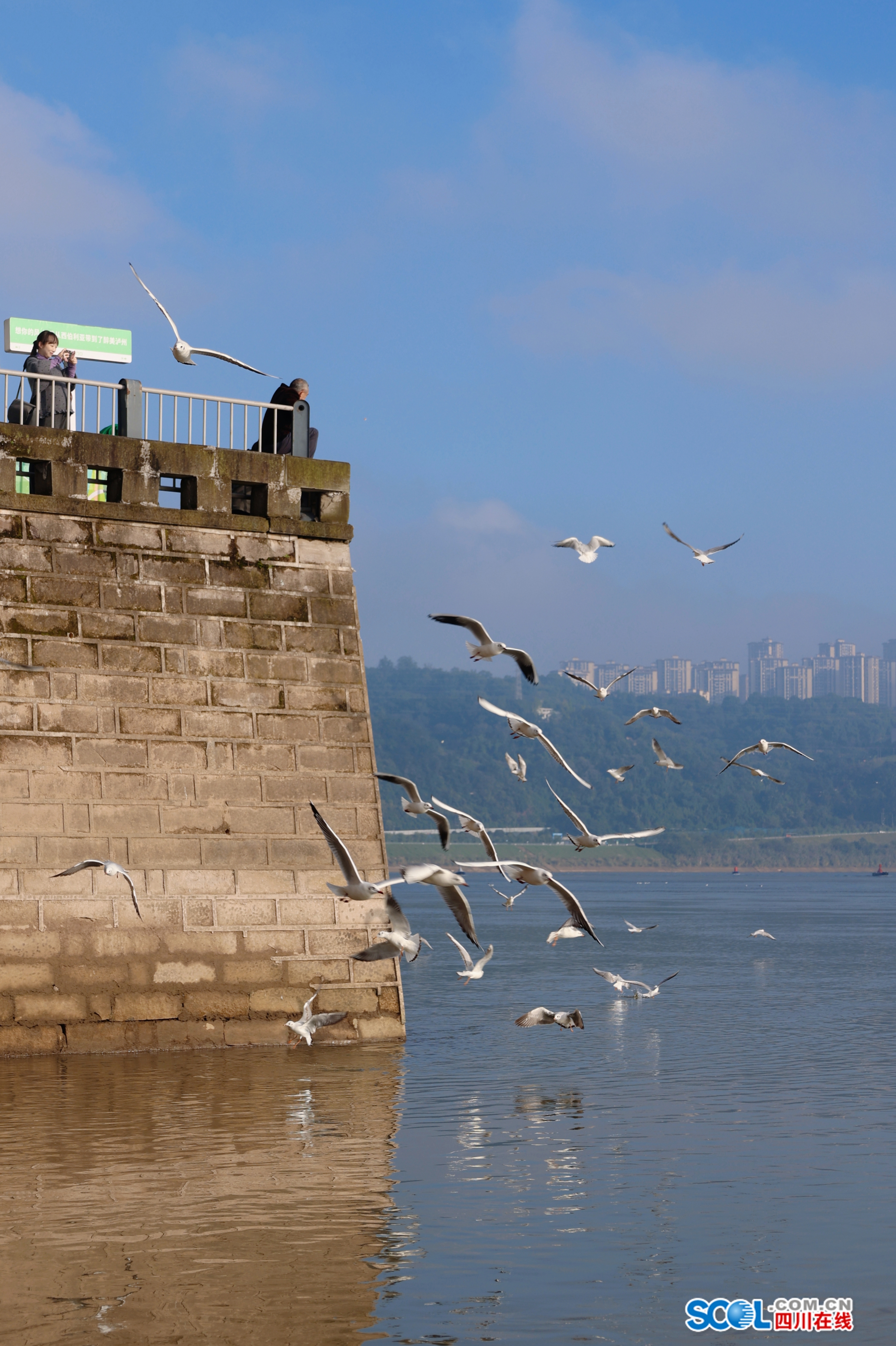空中,成群的红嘴鸥时而低空盘旋,时而俯冲捕食;江里,鱼群游来游去,穿梭自如;岸边,市民们早早守候着,摄影爱好者多角度抓拍红嘴鸥……一幕幕美好瞬间,构成了一幅人与自然和谐共生的画卷,为泸州增添了一份独有的浪漫。