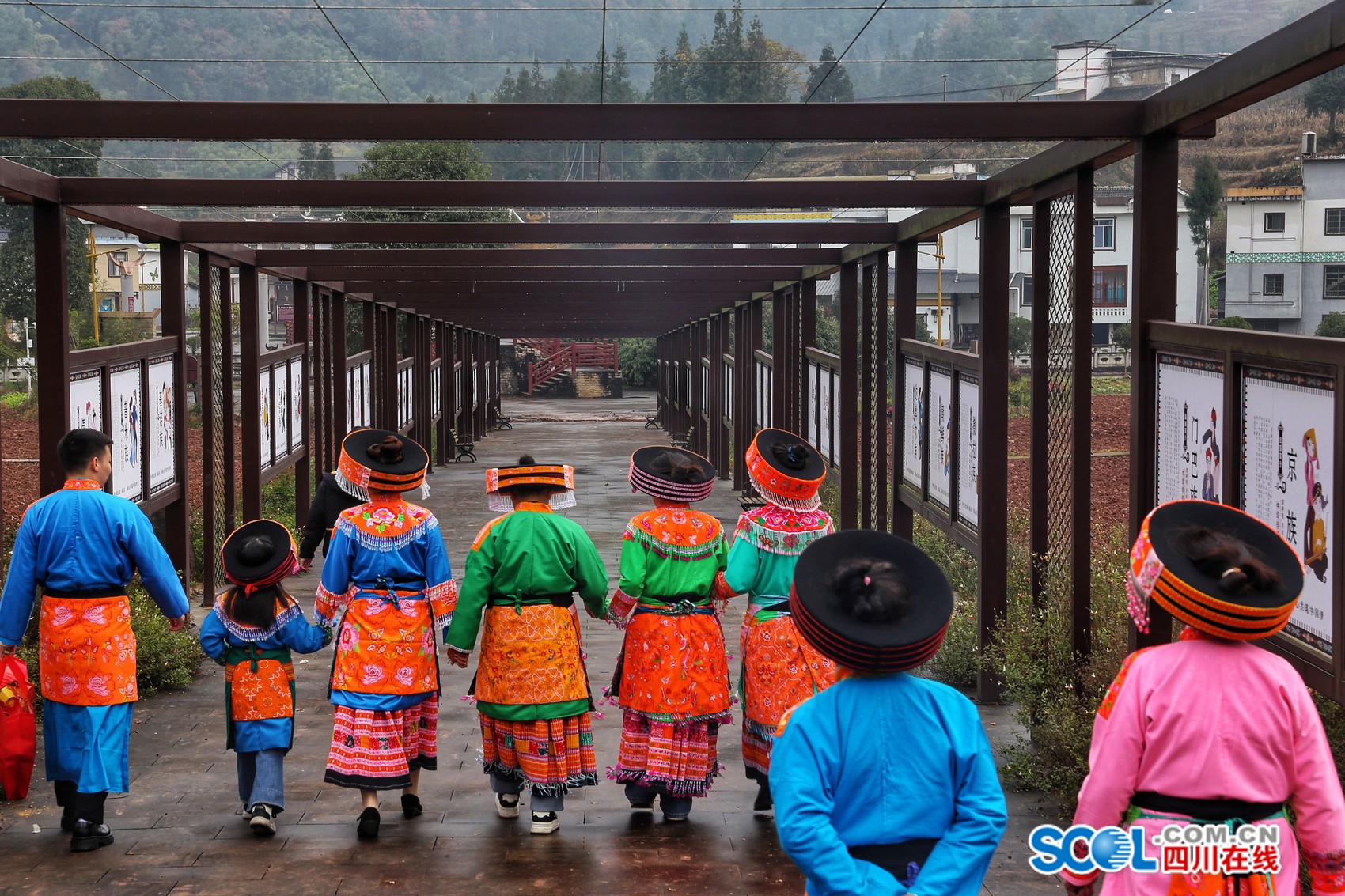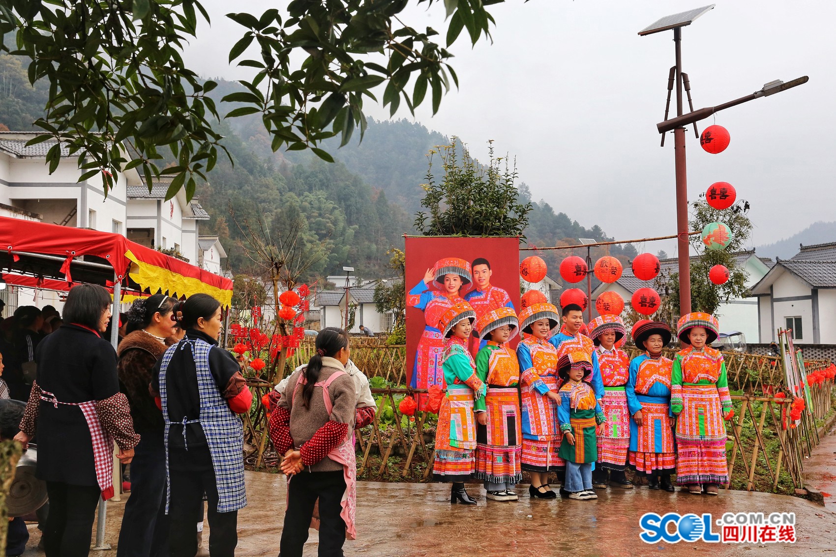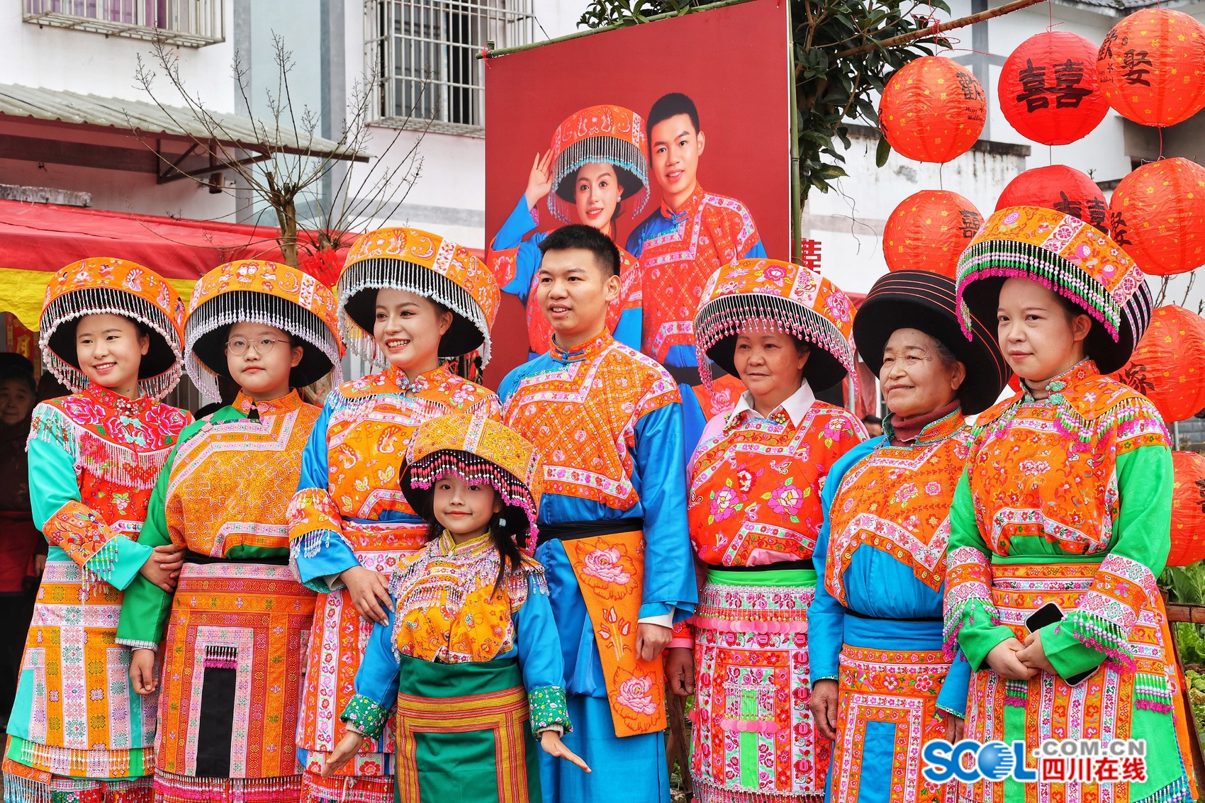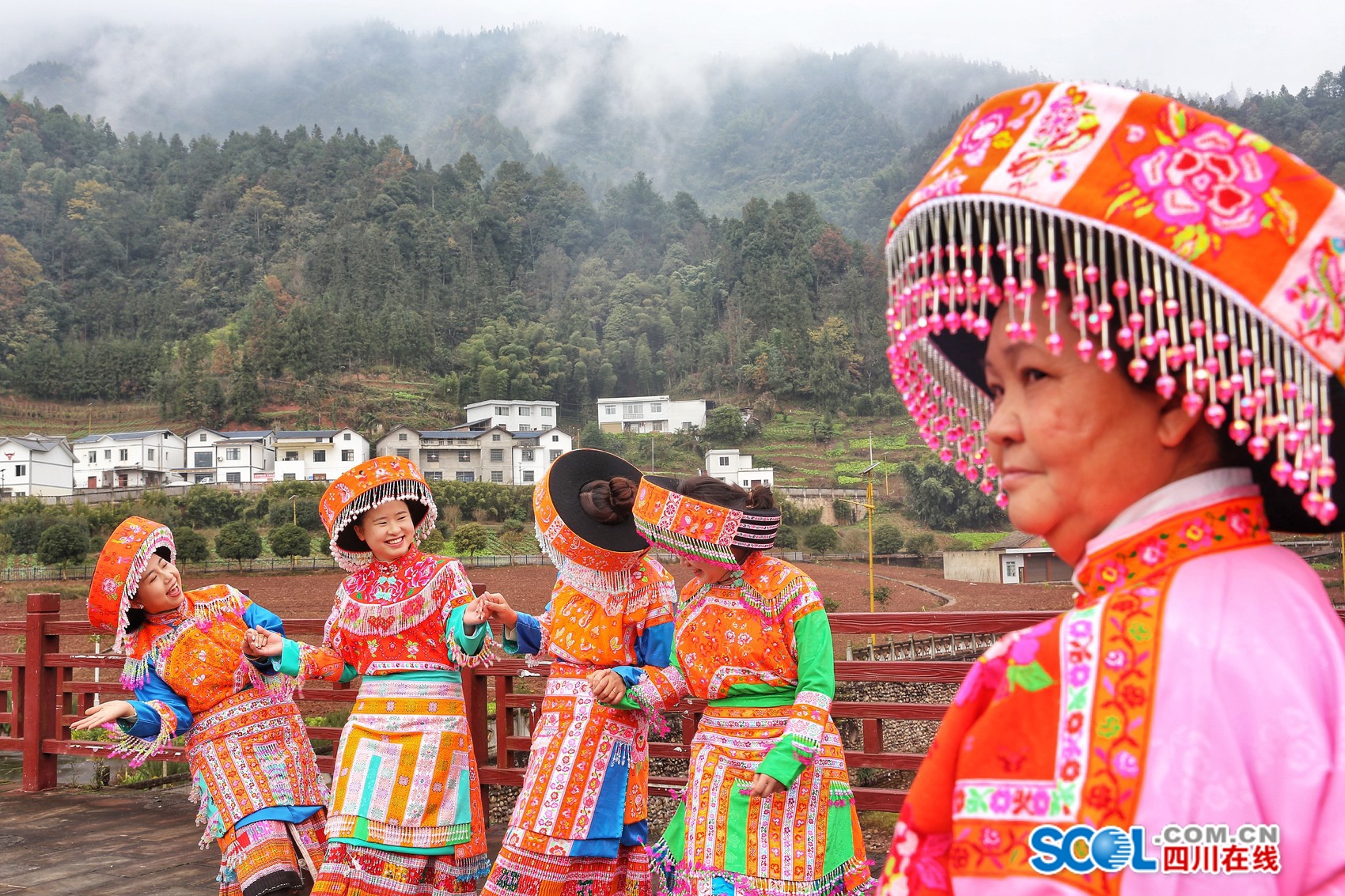 12月10日,泸州市古蔺县大寨苗族乡富民村,一户苗族人家张灯结彩,为即将出嫁的女儿陶倩筹备家宴。屋内亲朋齐聚,欢声笑语中,新娘陶倩换上母亲王秀英亲手缝制的苗绣嫁衣——一件以蝴蝶纹、孔雀、牡丹花等传统图案交相辉映的华服。
