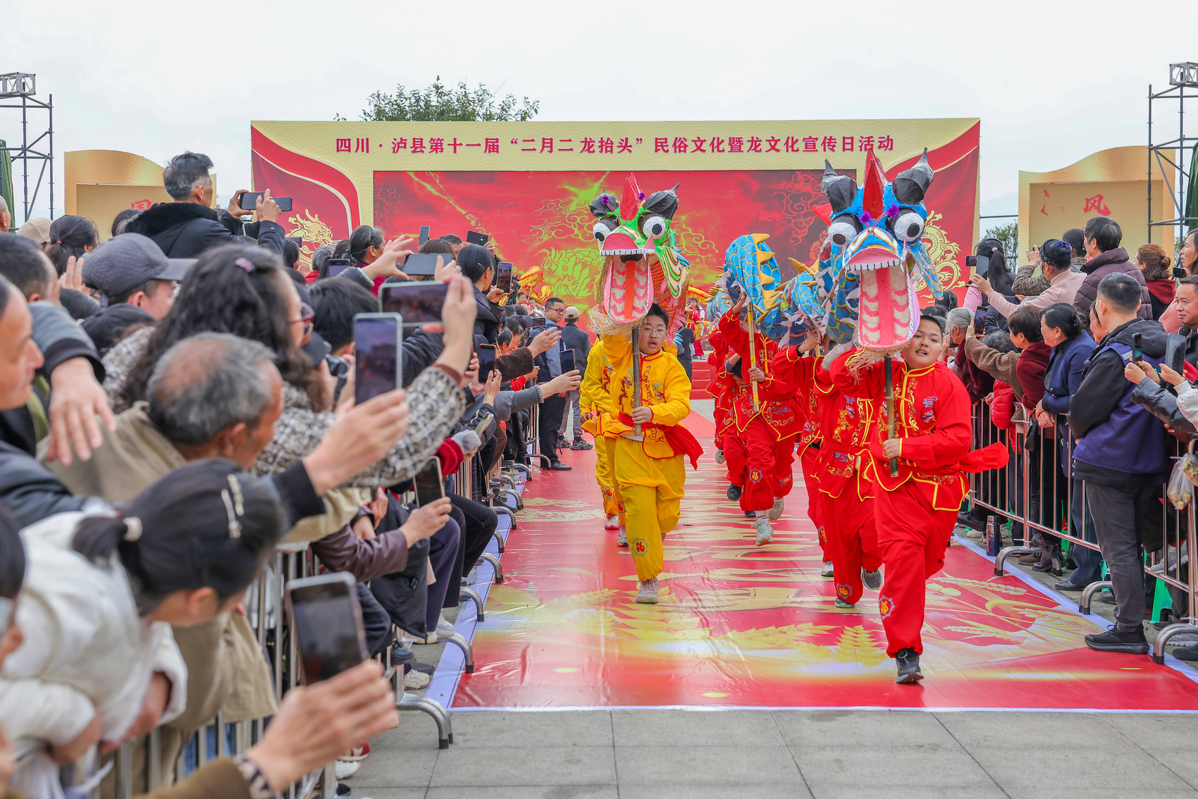 3月20日,农历二月初二“龙抬头”,四川泸县第十一届“二月二·龙抬头”民俗文化节暨龙文化宣传日活动在方洞镇举行。本届活动以“龙文化”为核心,整合非遗展演、农特展销、美食体验等多元内容,吸引数万群众参与,现场锣鼓喧天、群龙竞舞,处处洋溢着喜庆氛围。