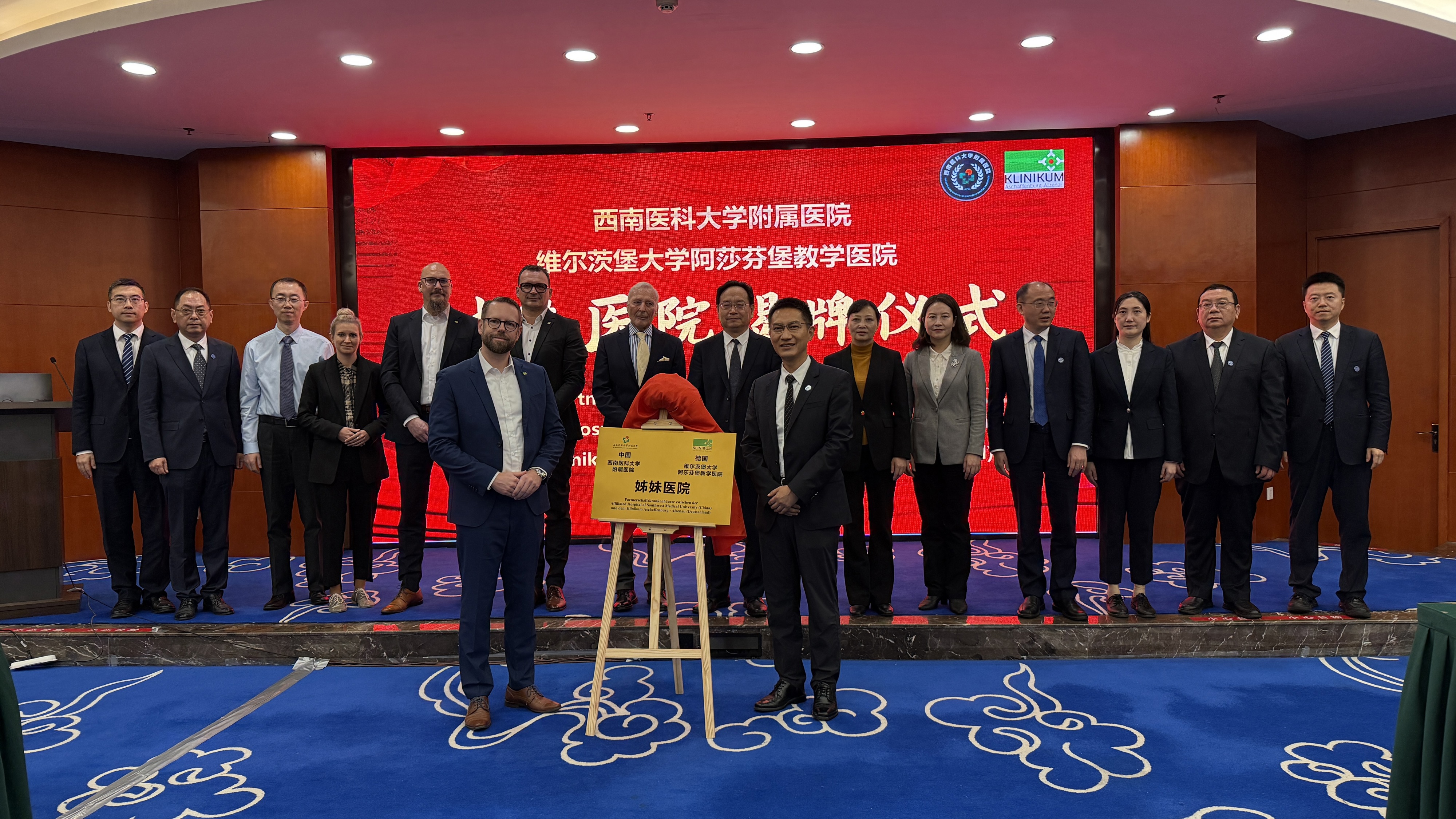 西南医科大学附属医院与德国维尔茨堡大学阿莎芬堡医院正式缔结为姊妹医院,不仅是两家医院深化合作、共谋发展的重要里程碑,对泸州市而言,是积极融入国家区域医药健康中心建设、持续扩大医疗卫生领域国际交流合作的又一实质性成果,标志着泸州市在推动卫生健康事业高质量发展、构建“事业产业双轮驱动”新格局上迈出了关键一步。