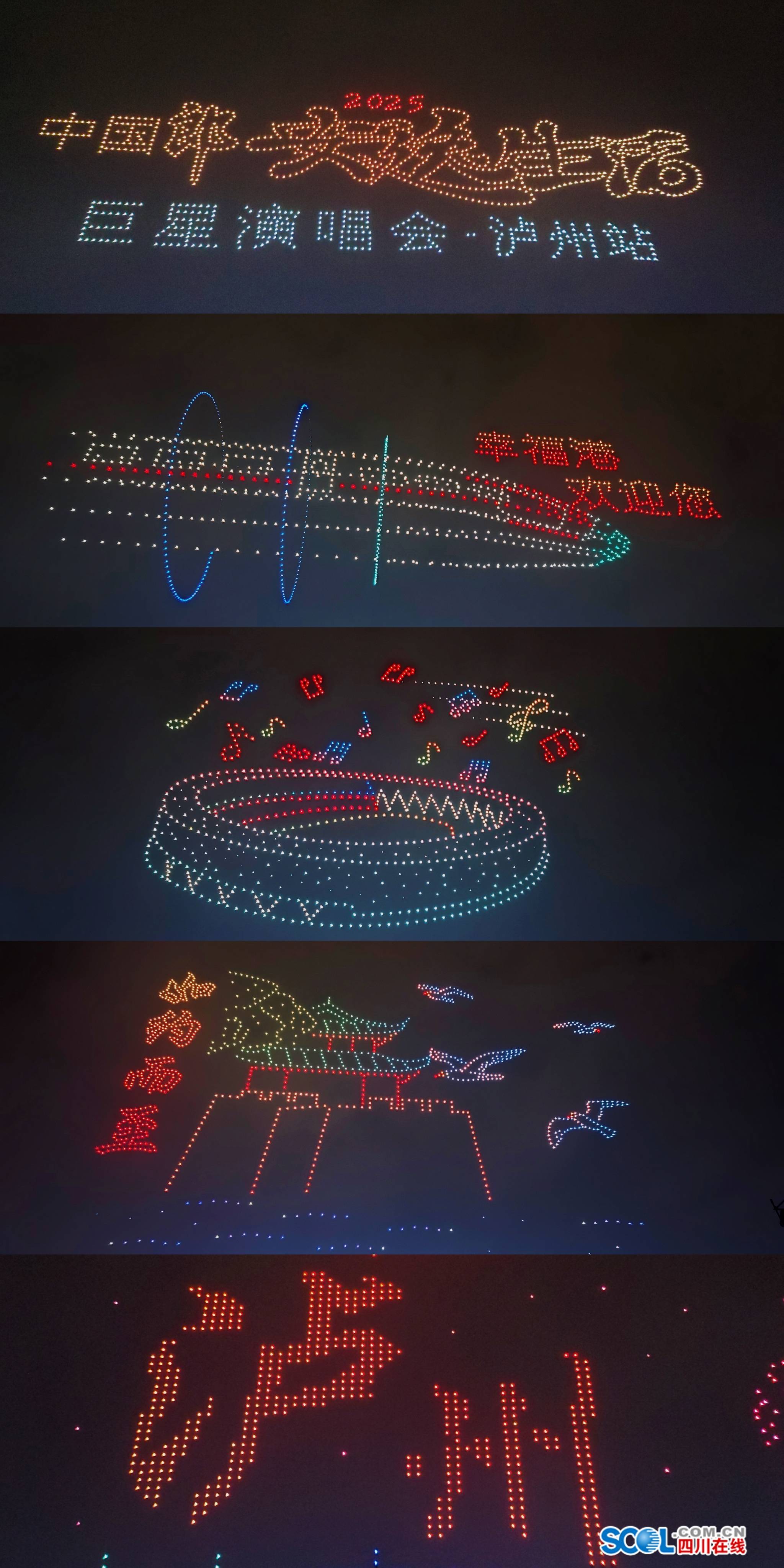 演唱会过程中,1200架无人机缓缓升空,在会场上空组成绚丽的灯光秀。