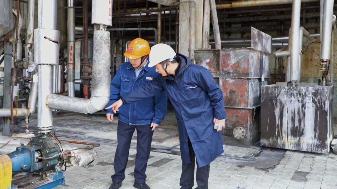 在胺车间,指导服务组发现C2502喷粉塔顶部蒸汽管接头泄漏;在酸车间,RP602伴热蒸汽出口法兰泄漏;多功能装置三楼,蒸汽管线也存在泄漏点……一个接一个的问题被“揪”出来,指导服务组现场标注点位、说明风险、明确整改时限。