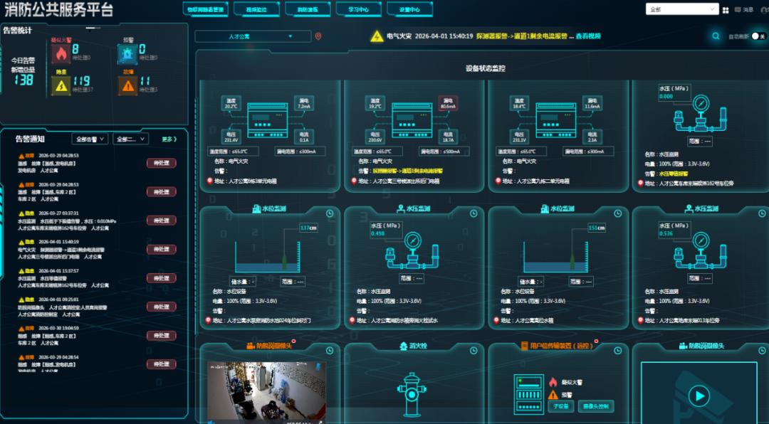 该项目一期投资200余万元,覆盖面积约42.8万平方米,服务入驻企业70家,部署消防物联网硬件设备400余套,构建起全天候、全覆盖的消防安全隐患智能监测与预警体系,实现火情早发现、风险早预警、隐患早处置。