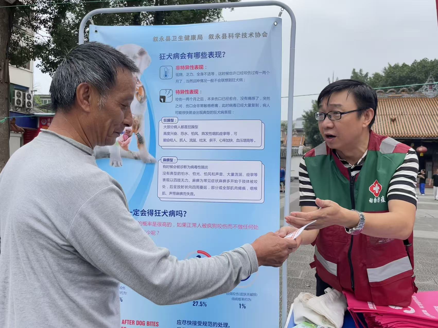 另一边,叙永县农业农村局则主要从犬只规范管理和定期为宠物接种兽用狂犬病疫苗等源头防控举措做宣传,强调“管好犬只”是降低传播风险的根本之策;叙永县科协也充分发挥科普职能,通过生动形象的展板内容提升宣传趣味性与接受度;作为定点处置单位,叙永县第二人民医院详细介绍了狂犬病暴露预防处置门诊的服务流程,为市民提供清晰就医指引。