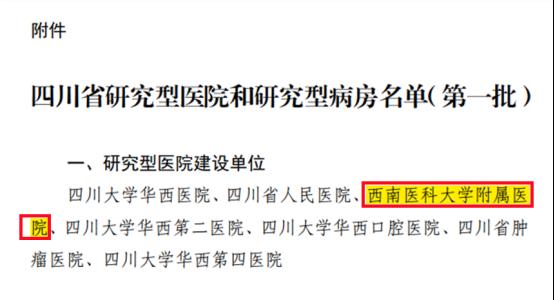 据了解,此次评选是根据《加快培育新质生产力全面激发卫生健康发展新能的若干措施》和《四川省研究型医院和研究型病房建设指引(试行)》等文件精神,经单位申报、专家评审等严格程序层层筛选而出。首批研究型医院建设单位共7家,西南医科大学附属医院位列其中。