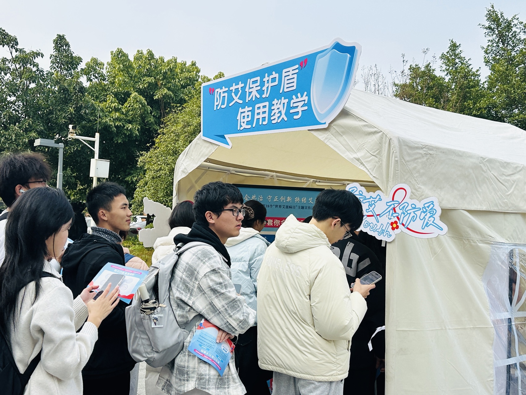 活动尚未正式开始,会场外的特色互动区域已热闹非凡:“防艾知多少”智慧闯关、“知情达行”行动指南、“我是防艾人”实践体验等多个展台前,学生们踊跃参与答题竞猜、情景模拟,在趣味互动中直观掌握防艾知识要点,切实提升自我防护意识与能力,让科学防艾的种子在青春校园落地生根。
