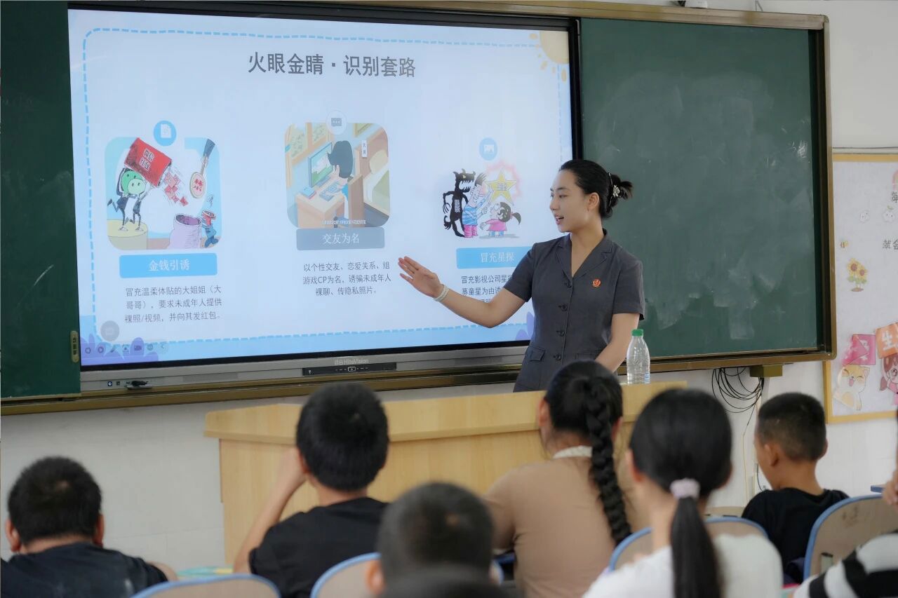 “孩子们,做好闯关准备了吗,我们即将面临第一关——网络诈骗!”“那么面对网络诈骗,我们有什么通过秘诀呢?”……朱雨涵带领孩子们以网络闯关的独特形式,寓教于乐地揭示了网络诈骗、网络欺凌、隔空猥亵的特点、套路以及应对方法,教会孩子们如何在网络世界里当好“小勇士”,在网络大冒险中成功闯关。