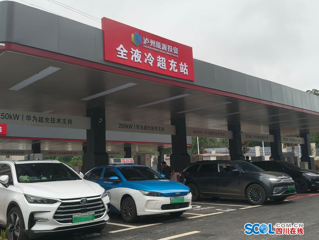 四川在线泸州消息(罗悦 阮航 文/图) 连日来,位于泸州市叙永县丹城领秀小区南门社区服务中心旁的南门家园超充站车流不息。该站点自10月1日起正式进入试运行阶段,不少闻讯而来的市民抢先体验充电服务。