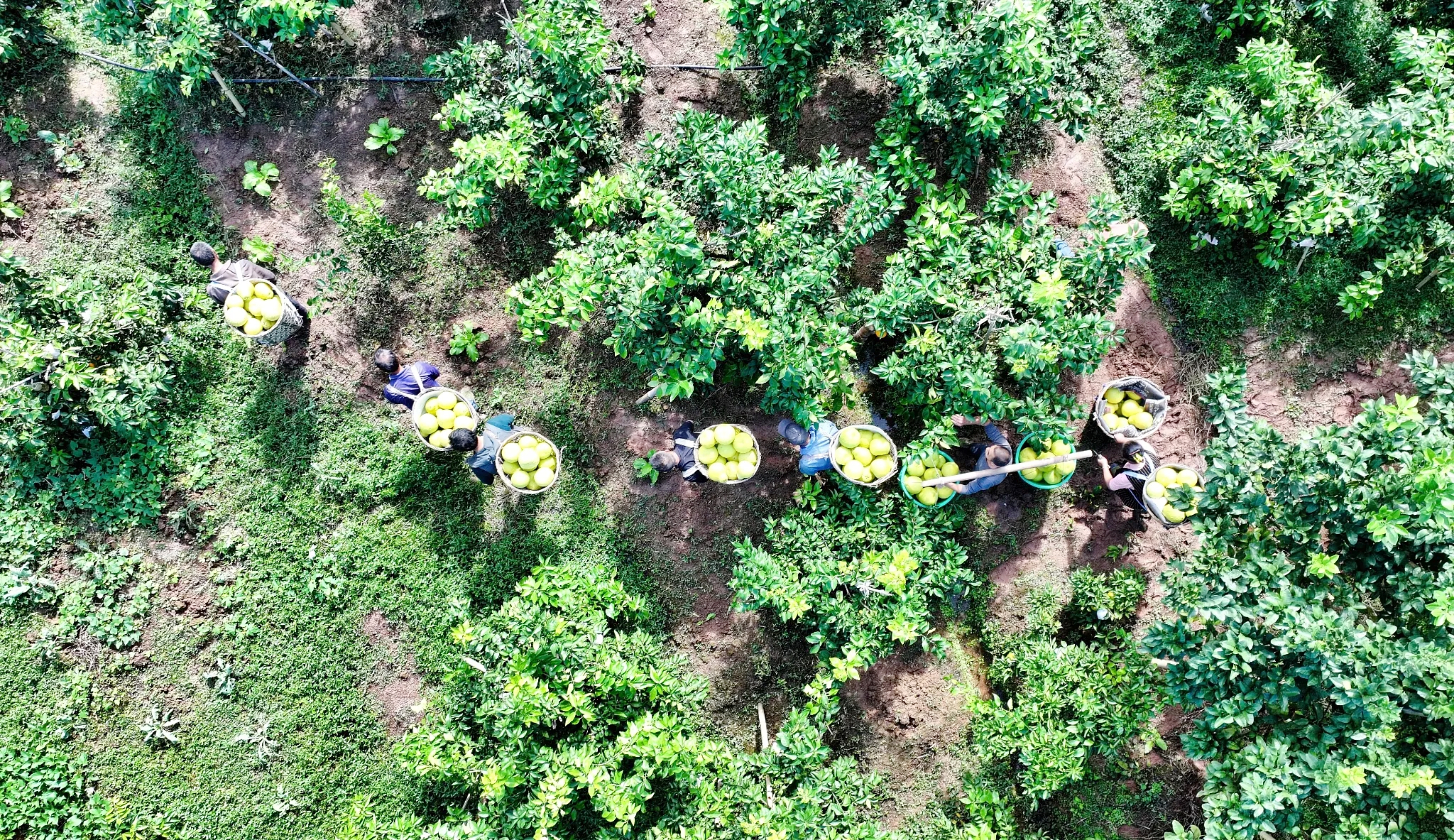 农场内,青黄相间的柚子挂满枝头,工人们正忙着采摘装筐。农场负责人安文其介绍:“农场现在的面积在 60 亩左右,目前挂果的树大约有 150 棵。从今天开始采摘,大约采摘一个星期,每天采摘5000斤,(今年)大约有3万斤的产量。”