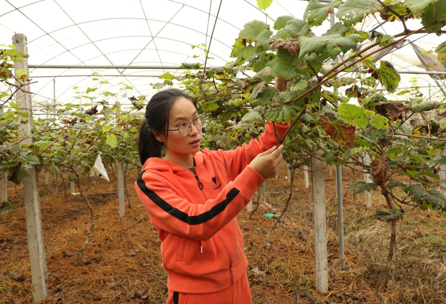 四川在线泸州消息(袁玉华 文/图)“葡萄应该施得肥了,病虫害防治也要跟上……”近日,在江阳区通滩镇大坝村种植专业合作社的大棚葡萄基地里,农家女孩罗梦正在进行葡萄秋季管理。