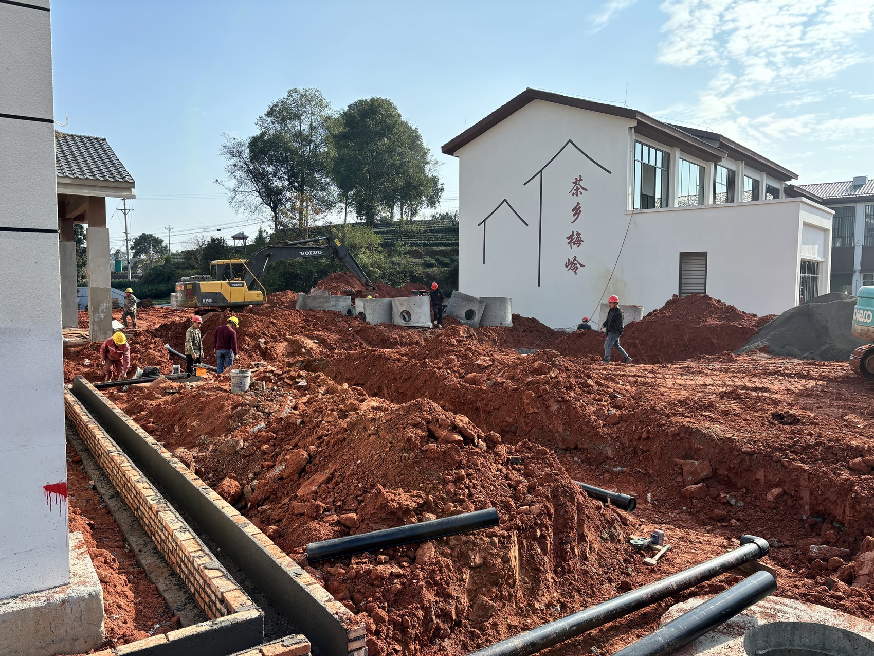 目前,该项目的总平施工正在有序推进,正在修建给排水管网、绿化带、围墙等。预计在今年年底,该项目将建成投用。届时,茶农能够在此处开展鲜叶交易,游客也可以前来品茶、体验茶文化。