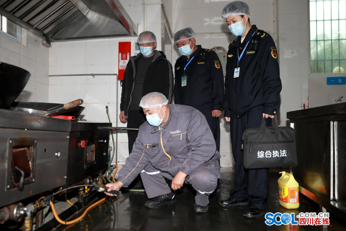 四川在线泸州消息(彭双 母宗雨/文 廖胜春/图) 近日,纳溪区综合行政执法局联合燃气公司,在辖区内集中开展燃气安全专项检查行动,对小区、餐馆、学校等场所的燃气管道、软管、灶具等进行全面“体检”。
