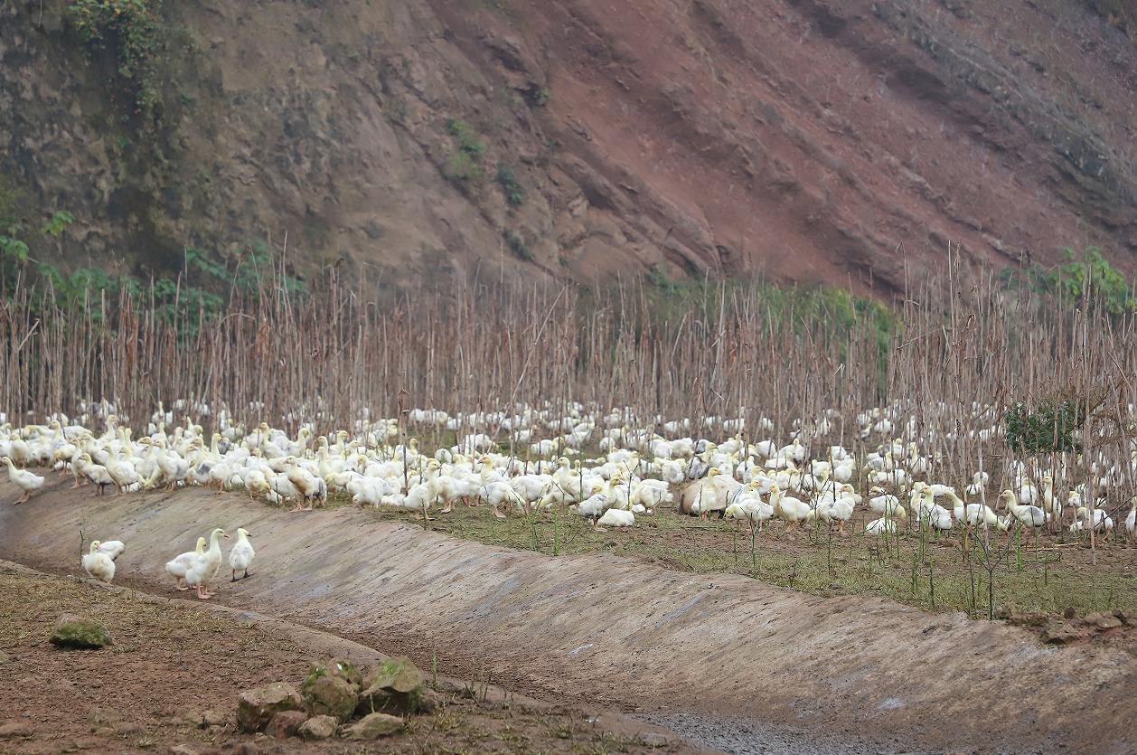 “我们基地里养殖的都是大白鹅,大白鹅耐粗饲,抗病力强、生长速度快,养殖风险小,用精饲料、杂草喂养就行。”鹅场负责人赵拓一边喂草一边介绍道:“这是今年喂养的第15批,我们这批共饲养了大白鹅7000余只,每批大概在6000—10000只左右,预计一年下来有420万元左右的产值,经济效益还是不错。”