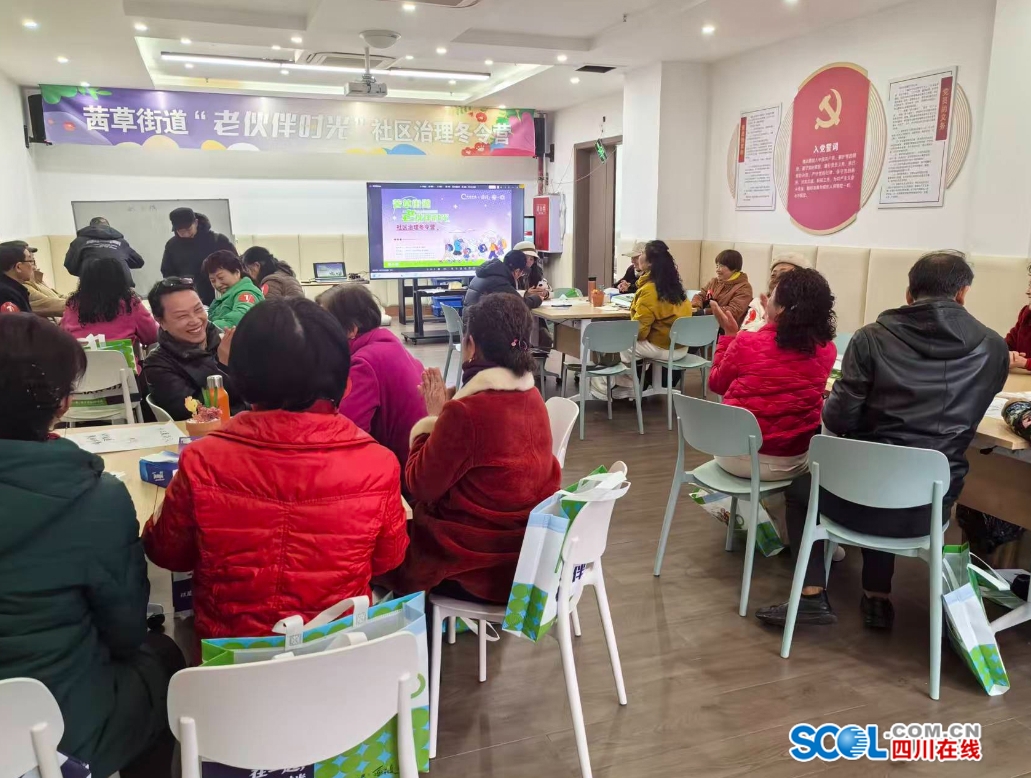 四川在线泸州消息(辜林 唐雨田 文/图) 2月3日,为期两天的江阳区茜草街道“老伙伴时光”社区治理冬令营在渔子溪社区顺利结营。本次活动在匠心社会工作服务中心的专业支持和江阳区新联会等单位的资源协助下,围绕社区离退休居民志愿服务能力提升展开,通过专业授课与体验互动相结合的方式,助力参与者进一步掌握服务技巧。