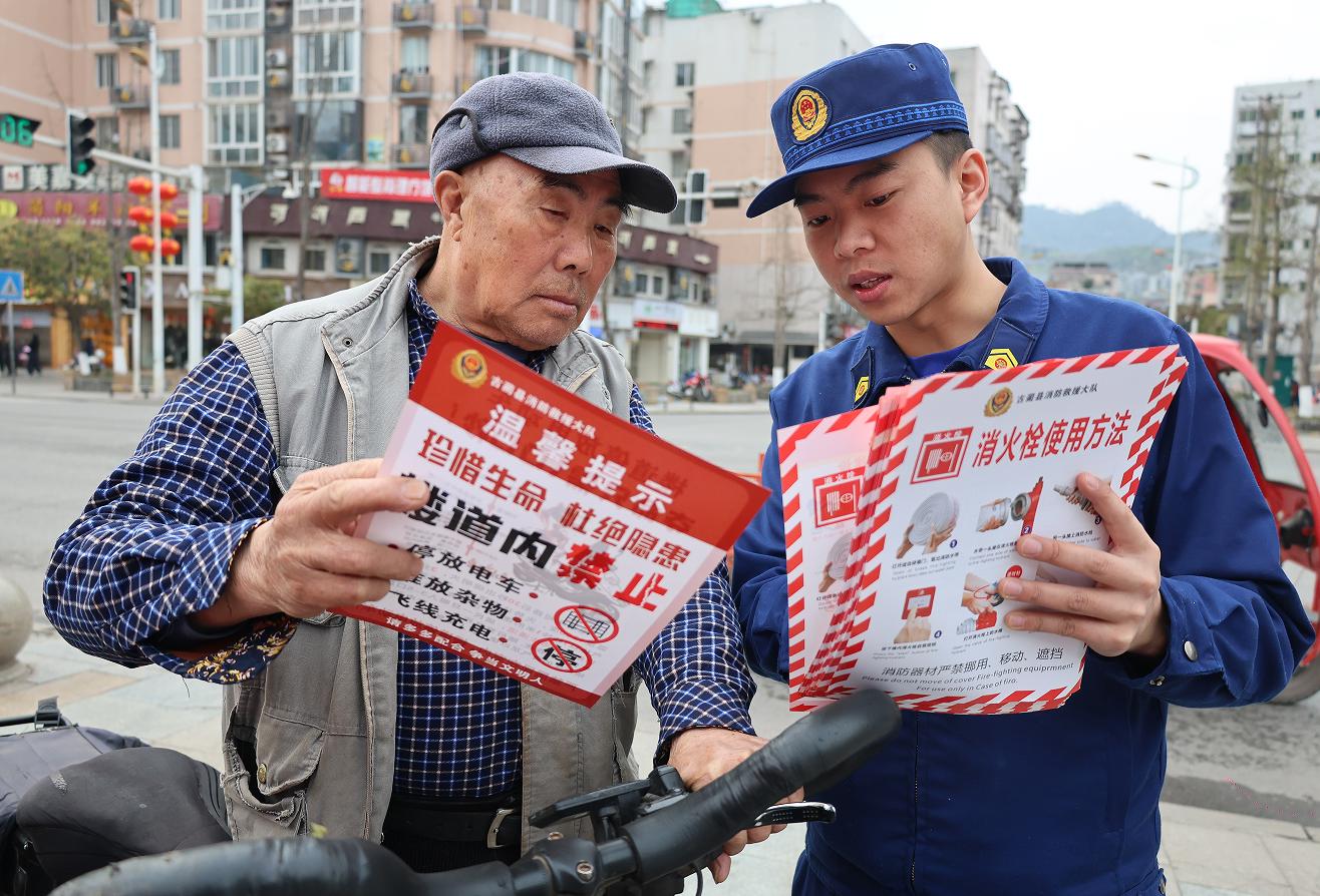 结合春季风干物燥、祭祀用火增多的火灾特点,宣传人员在派发宣传手册的同时,系统讲解日常安全用火用电用气规范:严禁私拉乱接电线、定期检查燃气管道,野外祭扫优先采用鲜花替代烧纸。针对常见火灾场景,现场演示灭火器“提拔握压”使用步骤,明确报火警需说清地址、火情、被困情况等核心要素,并传授火场逃生“低姿弯腰、捂口鼻、不乘电梯”的关键技巧,引导群众筑牢自防自救防线。
