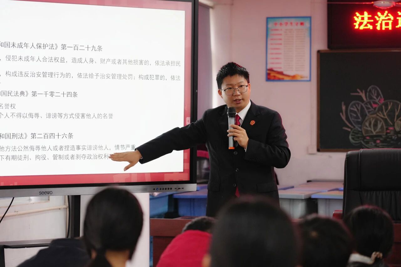 宣讲现场,法治副校长围绕“校园欺凌”主题,清晰解读《中华人民共和国未成年人保护法》等法律法规,明确界定校园欺凌定义,详细拆解言语、身体、社交、网络、财物五大欺凌类型,结合典型案例剖析欺凌危害,让学生直观认清“玩笑”与欺凌的边界。同时,重点讲解欺凌行为需承担的民事、刑事等责任,破除“未成年人无需担责” 的误区。