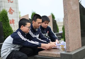 抵达烈士陵园后,全体人员整齐肃立,低头默哀。在庄严的仪式中,党员教师与少先队员们重温誓词,铭记使命,依次将自己制作的小花献于烈士墓前,并认真擦拭墓碑、整理碑前杂物,以绿色、文明、简朴的方式缅怀先烈、寄托思念。