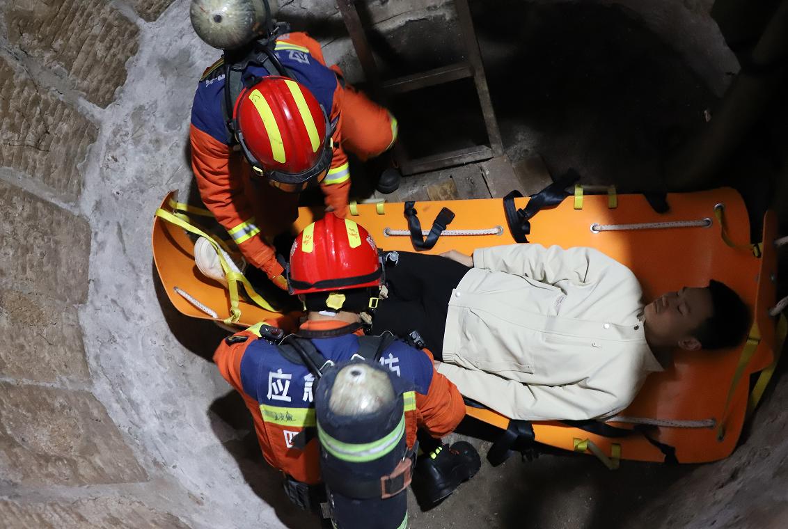 在该镇莲花村一酒厂,参训人员模拟在酒池生产作业过程中,不慎吸入有毒有害气体出现晕厥险情,现场救援人员立即启动应急响应,迅速划定警戒区域、上报险情信息开展十九行动。救援人员严格遵照“先通风、再检测、后作业”原则,穿戴专业防护装备进入有限空间开展科学施救,将被困人员转移至安全区域后,医疗救护组同步开展心肺复苏、紧急供氧等应急处置,整个流程规范有序、处置高效,有效检验了应急队伍快速响应和协同救援能力。施救演练结束后,消防中队负责人对该环节演练情况进行初步点评,详细讲解有限空间应急施救的核心规范和注意事项。