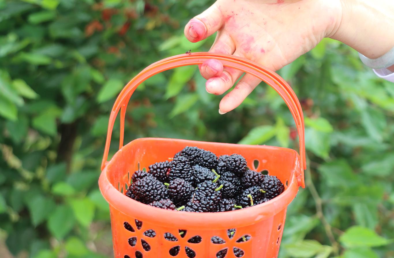 今年农场桑葚长势良好,果实个头大、果肉肥厚。目前,农场桑葚刚进入采摘期,预计再有一个星期进入最佳采摘期,为广大游客提供了周末休闲、亲子游玩采摘的好去处。